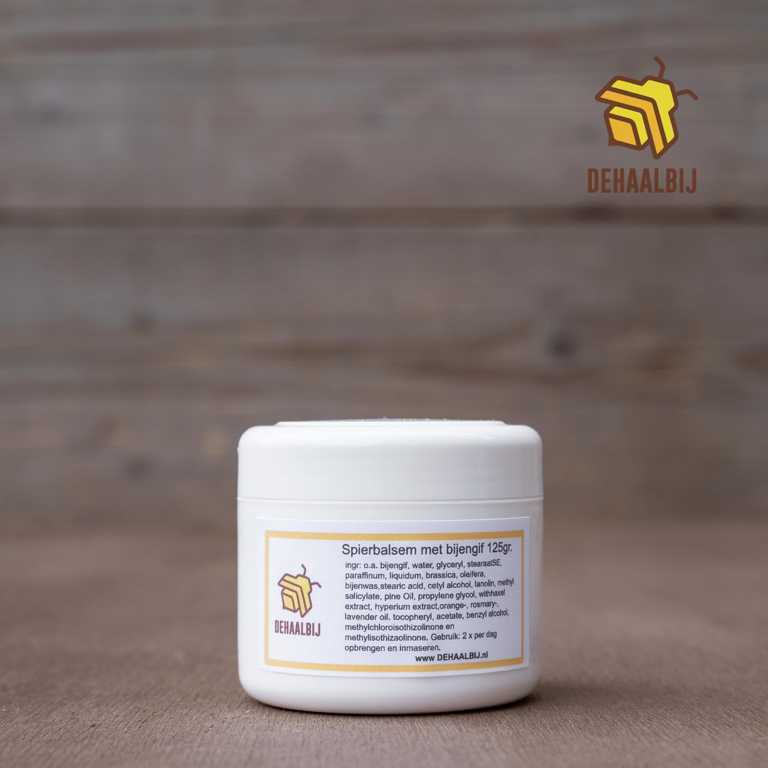 Spierbalsem/bijengifzalf is een verzorgende zalf die helpt bij stijve en gespannen spieren én de huid verzorgt. Onze bijengifzalf/ spierbalsem combineert natuurlijke ingrediënten met actief bijengif, waardoor de spieren op een milde manier gestimuleerd worden en de huid soepel en zacht blijft. Het resultaat: een warm, tintelend gevoel en spieren die ontspannen aanvoelen. Ideaal voor sporters, mensen met fysiek werk of iedereen met spierpijn.
